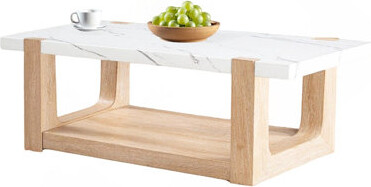 - Red Barrel Studio® Sophisticated Table Wood & Marble Complements Living Space No Assembly Necessary Elegant Coffee Cherry Finish Fits Various Styles Ready To Place